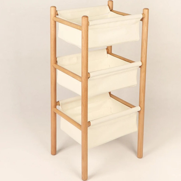 ساختار اصلی آن از چوب راش وارداتی مرغوب تشکیل شده که استحکام، طول عمر و زیبایی طبیعی چوب را تضمین میکند. سبدهای پارچهای سفید و مقاوم، جداسازی و نظمدهی وسایل را آسان میسازند و قابل شستوشو هستند.